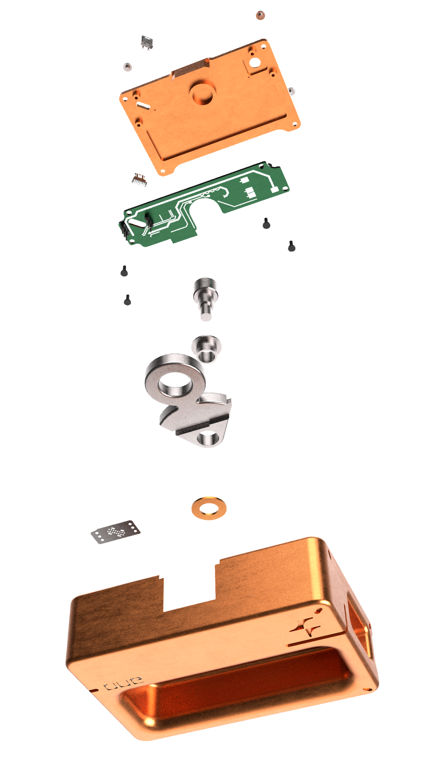 Precision-milled from a single block of aluminium, the DUE fuses industrial toughness with pocket-sized elegance.